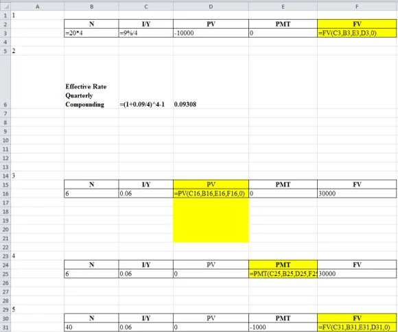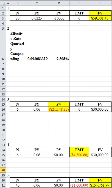 In the above excel sheets, the solutions have been highlighted with the yellow colour, also for computation of value the formula sheet attached in first place can be referred.
