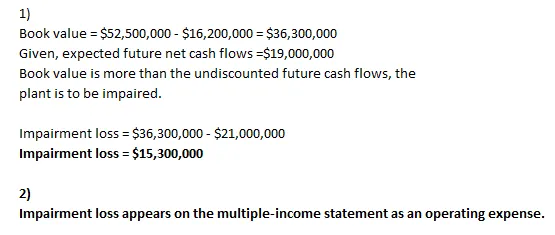 Determine the amount of impairment loss assuming that the estimated undiscounted sum of future cash flows is $21,000,000 instead of $19,000,000 and $36,550,000 instead of $19,000,000. (Enter your answers in whole dollars.)