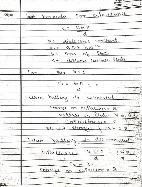 Q2) A parallel-plate capacitor filled with air carries a charge Q. The battery is disconnected, and a slab of material with dielectric constant k = 2 is inserted between the plates. Which of the following statements is true?