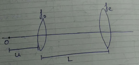 Also, Total Magnification = M = Mo x Me [Mo = magnification by objective, Me = magnification by eyepiece]