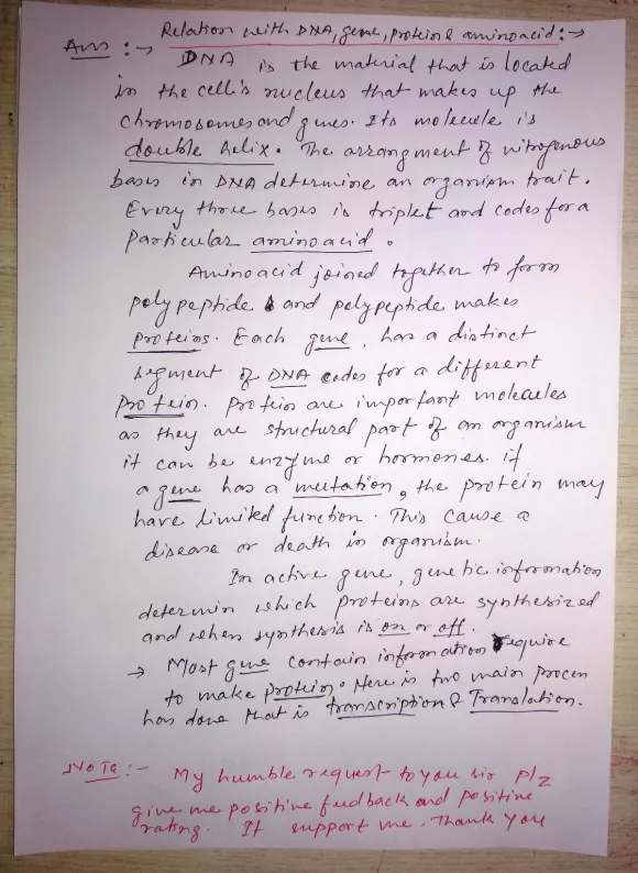 A gene is composed of DNA and a protein is composed amino acids. Describe the steps...