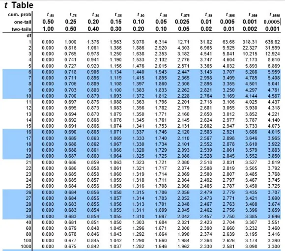 which follows t distribution with (n-1) degrees of freedom and 5% level of significance.