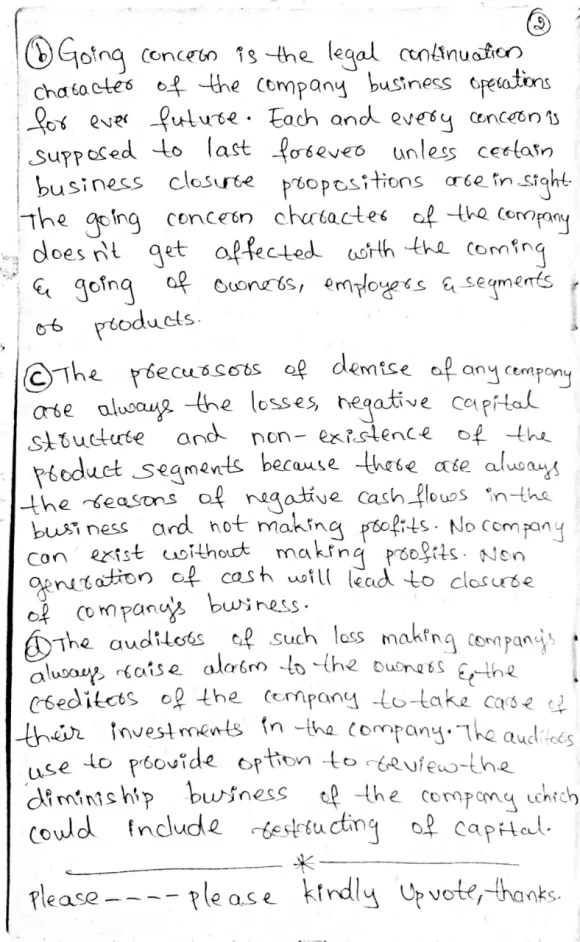 b. What is a going concern? Define it in your words, don’t quote the book.