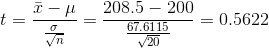 t-critical value at significance level of 0.05 with 19 degrees of freedom is, tcrit = 1.729