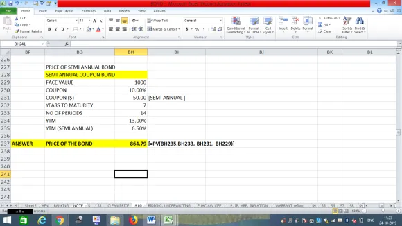 value, a 10% semiannual coupon, 7 years to maturity, and a 13% YTM.