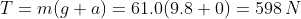 A 61.0 kg box hangs from a rope. What is the tension in the rope if: