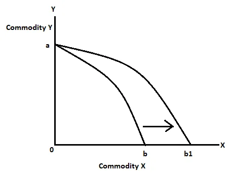 b) Efficient technology for the production of commodity Y: It would mean more production of Y with the same resources. PPC rotate outward rather than shift;