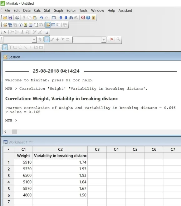 To find out the correlation coefficient, I have used Minitab Software -> stat - > Basic statistics -> correlation
