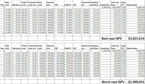 a. What is project NPV in the best-case scenario, that is, assuming all variables take on the best possible value?
