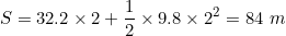 A rock is thrown downward from a tower with an initial speed of 32.2 m/s. If it hits the ground in under 2 seconds how high is the tower?