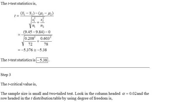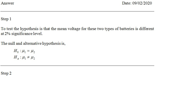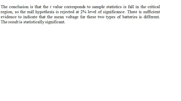 An engineer is comparing voltages for two types of batteries (K and Q) using a sample of 72 type K batteries and a sample of 78 type Q batteries. The mean voltage is measured as 9.45 for the type K batteries with a standard deviation of 0.208, and the mean voltage is 9.84 for type Q batteries with a standard deviation of 0.603. Conduct a hypothesis test for the conjecture that the mean voltage for these two types of batteries is different. Let μ1 be the true mean voltage for type K batteries and μ2 be the true mean voltage for type Q batteries. Use a 0.02 level of significance.