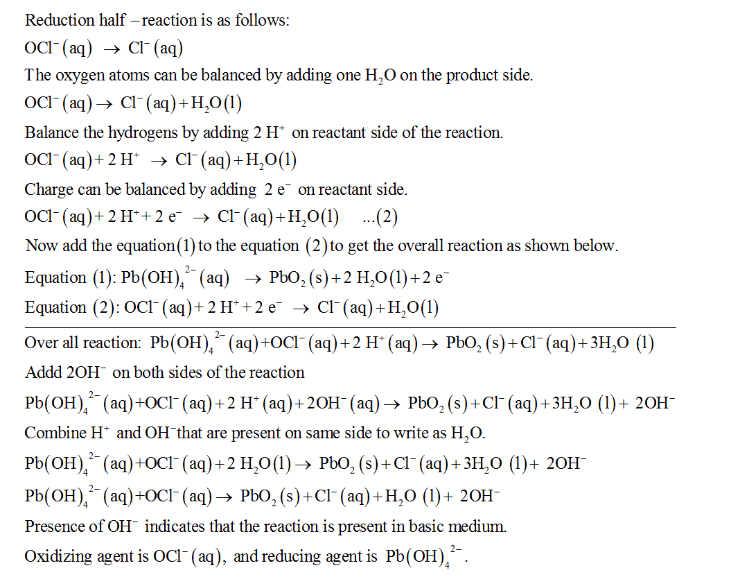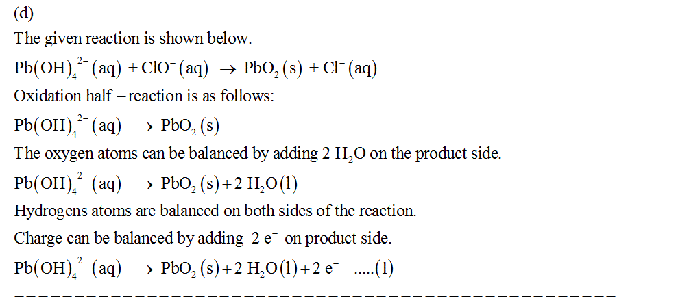 (d) Pb(OH)42-(aq) + ClO-(aq) ? PbO2(s) + Cl-(aq) (basic