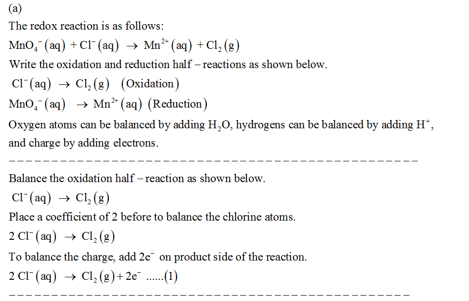 (a) MnO4-(aq) + Cl-(aq) ? Mn2+(aq) + Cl2(g) (acidic solution)