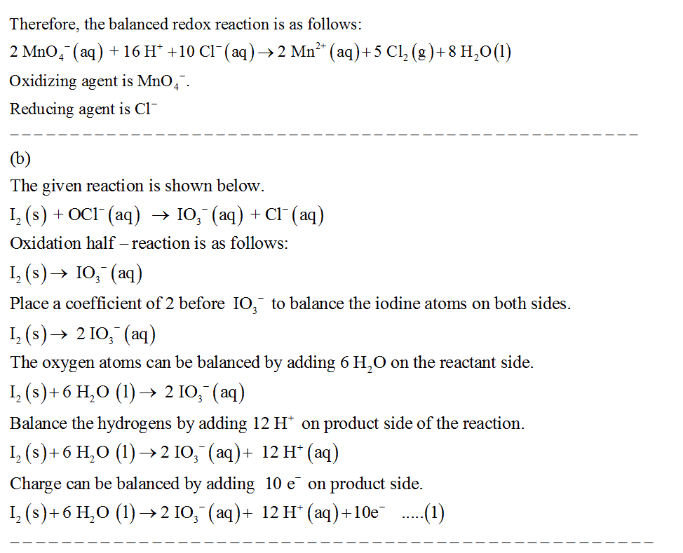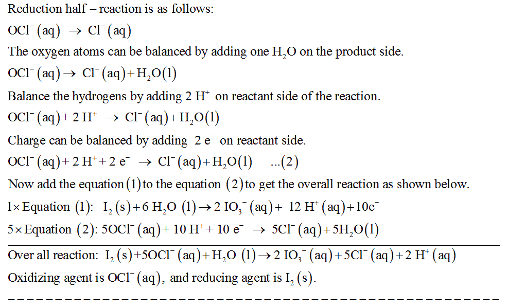 (b) I2(s) + OCl-(aq) ? IO3-(aq) + Cl-(aq) (acidic solution)
