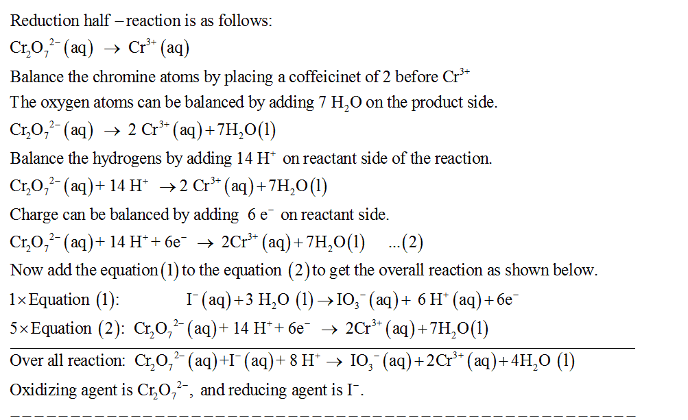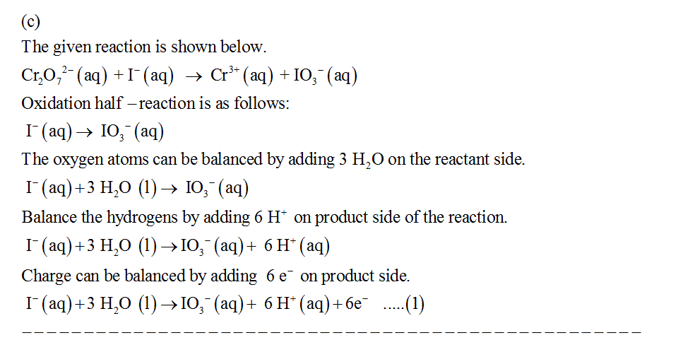 (c) Cr2O72-(aq) + I-(aq) ? Cr3+(aq) + IO3-(aq) (acidic