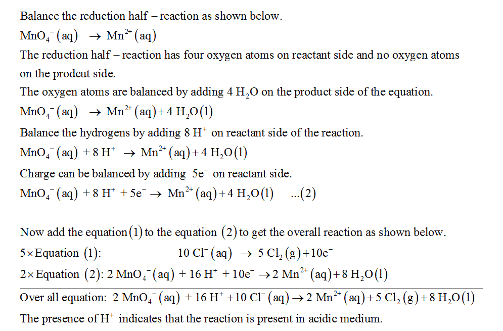 2Mn2+(aq)+5Cl2(g)+8H2O(l)