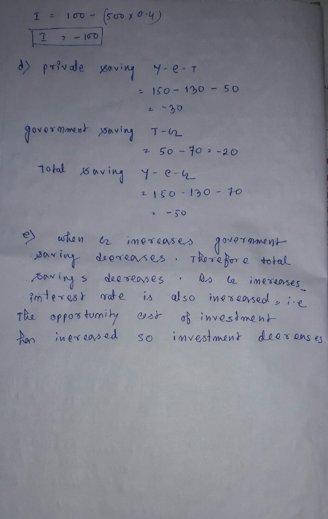 Investment (I) is given by the equation I = 1, 500 − 50r. Taxes (T