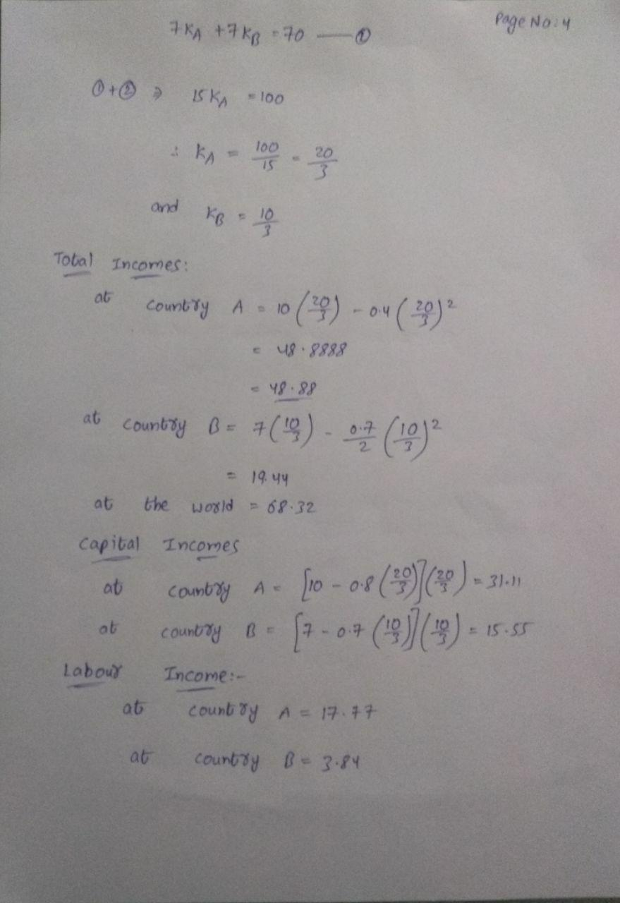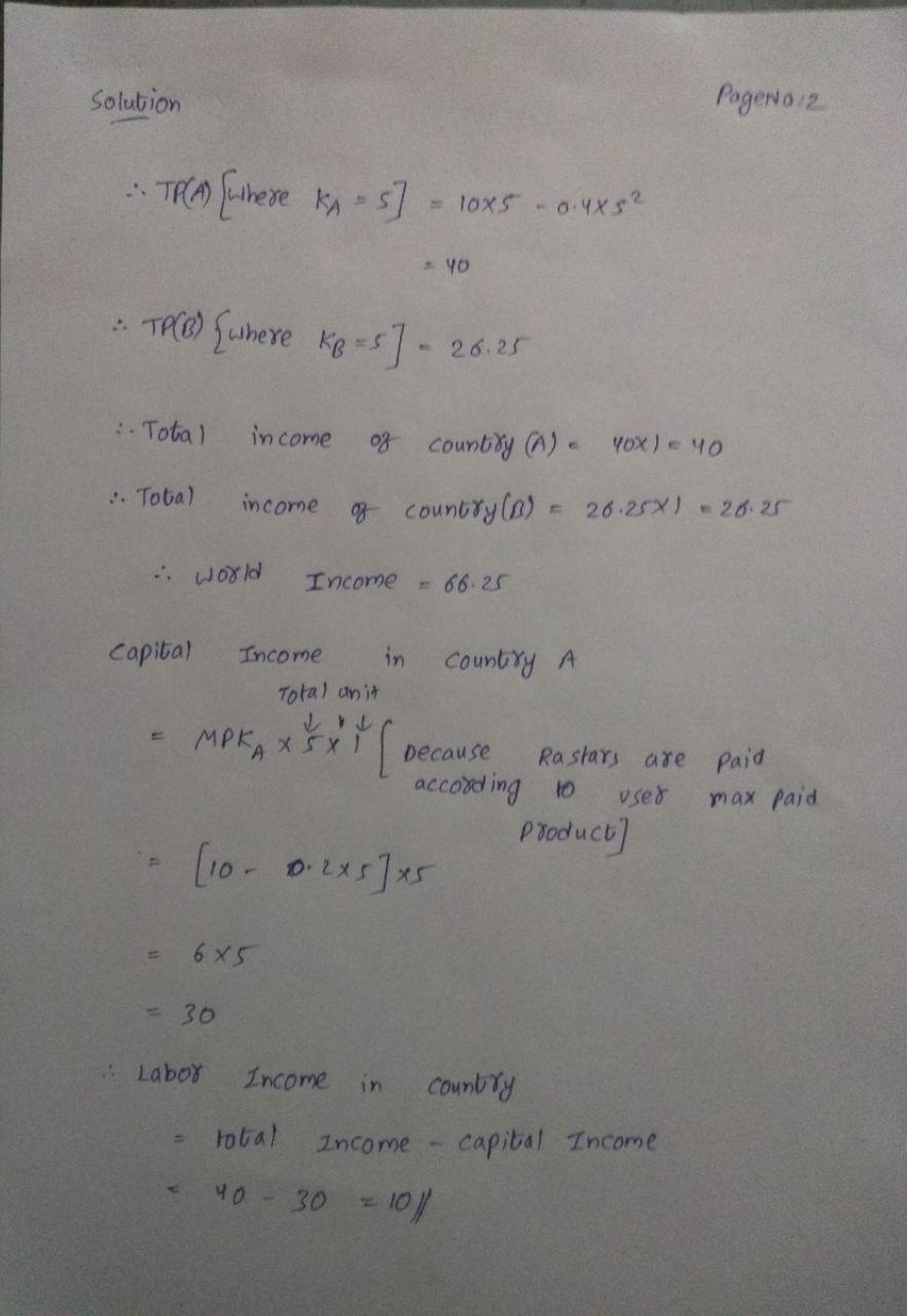 a) The initial allocation of capital is ?? = 5 and ?? = 5. Find each country’s total income as well as labor and capital income. What is the world income? [Mark: 0.75]