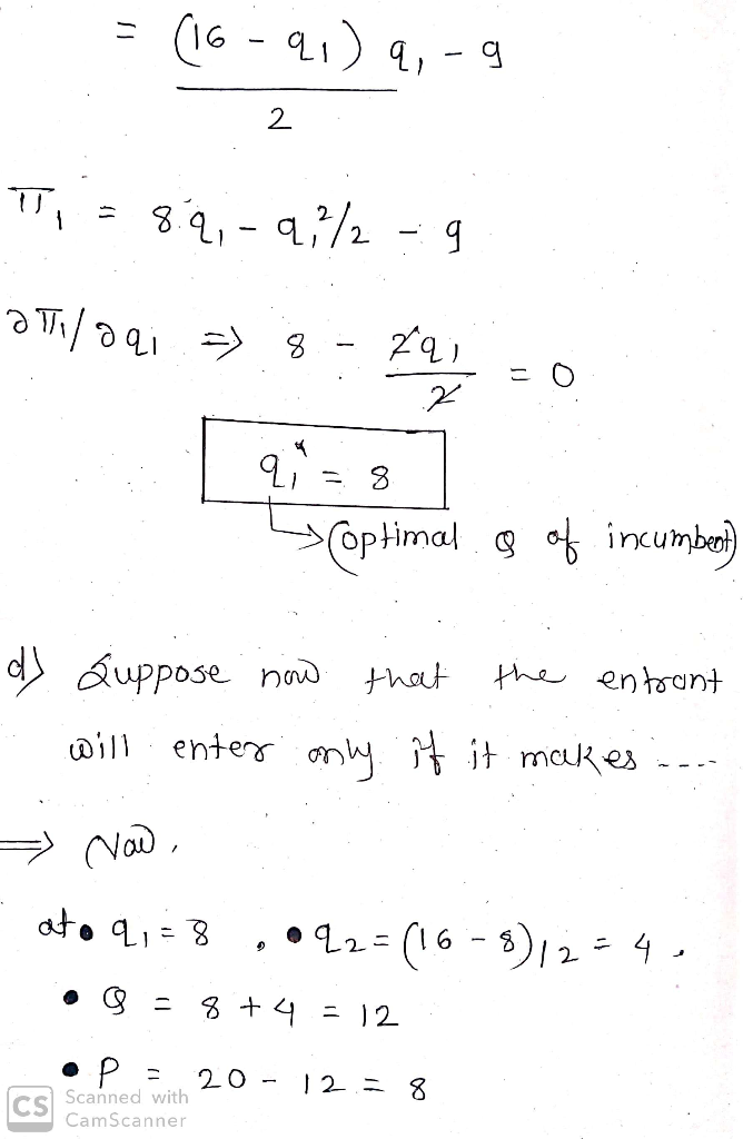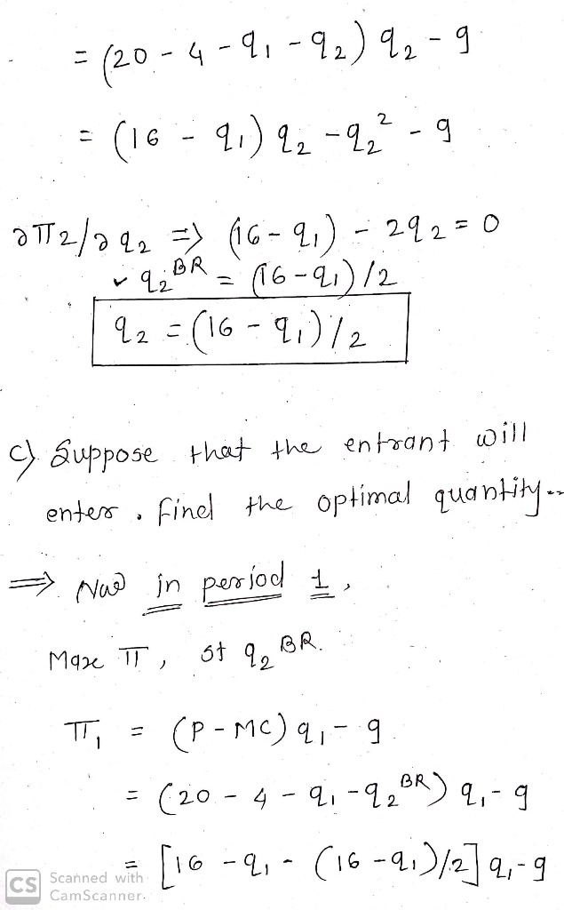 (c) Suppose that the entrant will enter. Find the optimal quantity