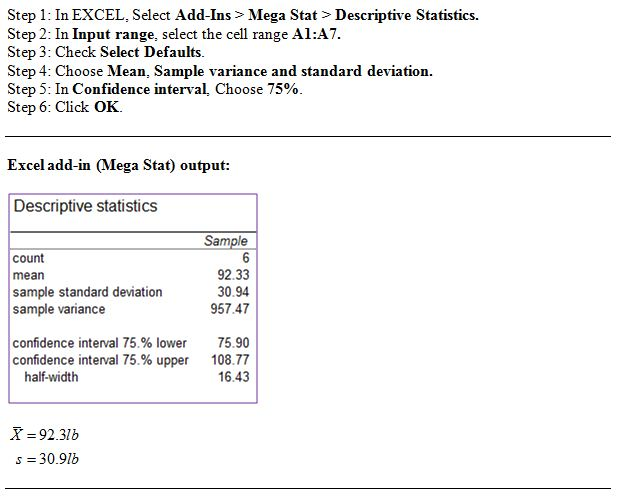 (a) Use a calculator with mean and sample standard deviation keys to find the sample mean weight x and sample standard deviation s. (Round your answers to one decimal place.)