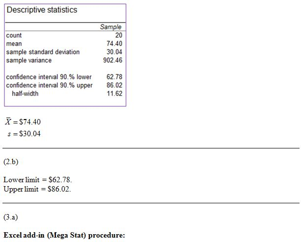 2.) How much does a sleeping bag cost? Let's say you want a sleeping bag that should keep you warm in temperatures from 20°F to 45°F. A random sample of prices ($) for sleeping bags in this temperature range is given below. Assume that the population of x values has an approximately normal distribution.