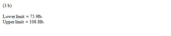 3.) How much do wild mountain lions weigh? Adult wild mountain lions (18 months or older) captured and released for the first time in the San Andres Mountains gave the following weights (pounds):