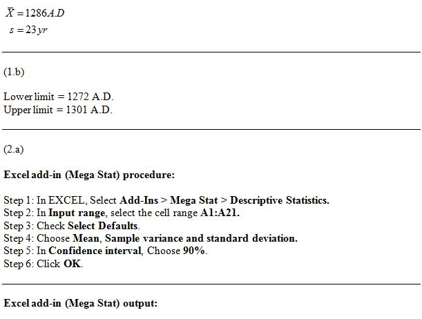 1.) The method of tree ring dating gave the following years A.D. for an archaeological excavation site. Assume that the population of x values has an approximately normal distribution.