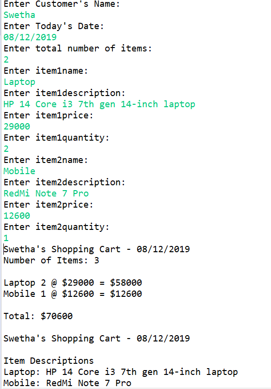 ShoppingCart(String customerName, String currentDate)