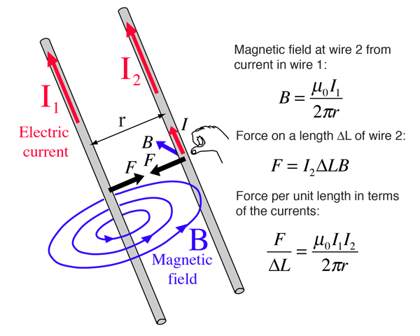 As you can see above if two parallel wires carry current in same direction they attract each other but in our case, they are in opposite directions Hence they repel.