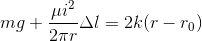 Thus leaving us magnetic force = 2k(r-r0) - mg= 0.0002N
