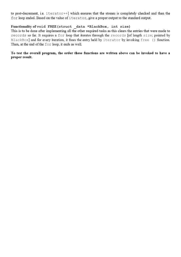 void FREE(struct _data *BlackBox, int size) - this function will free up