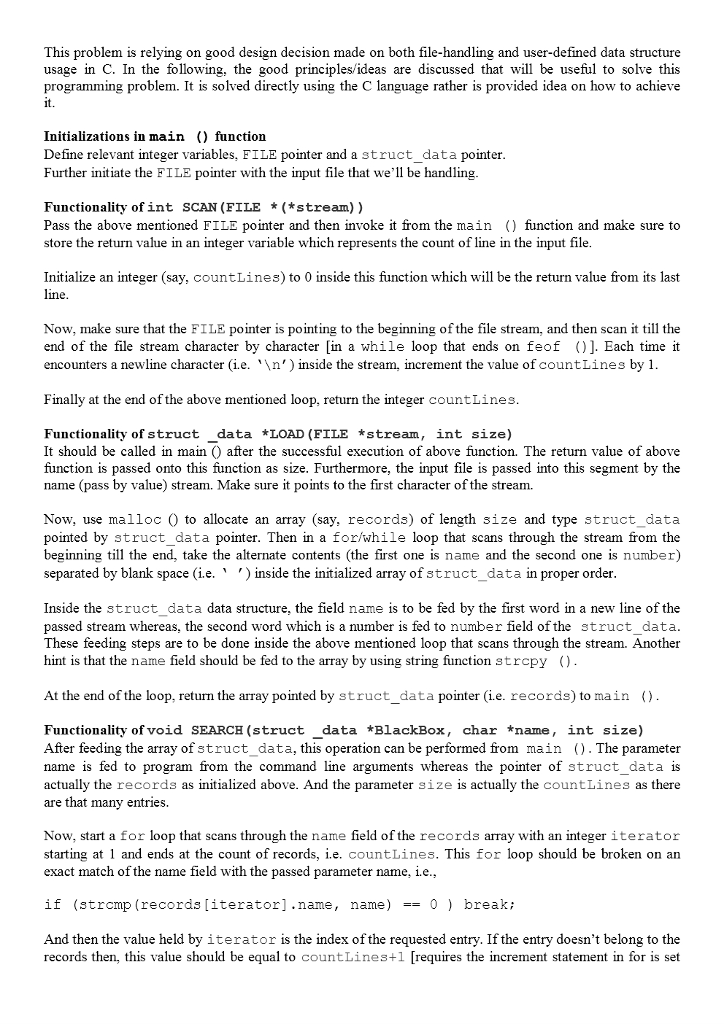 void SEARCH(struct _data *BlackBox, char *name, int size) - this function