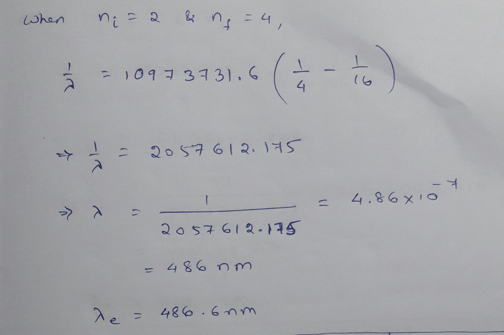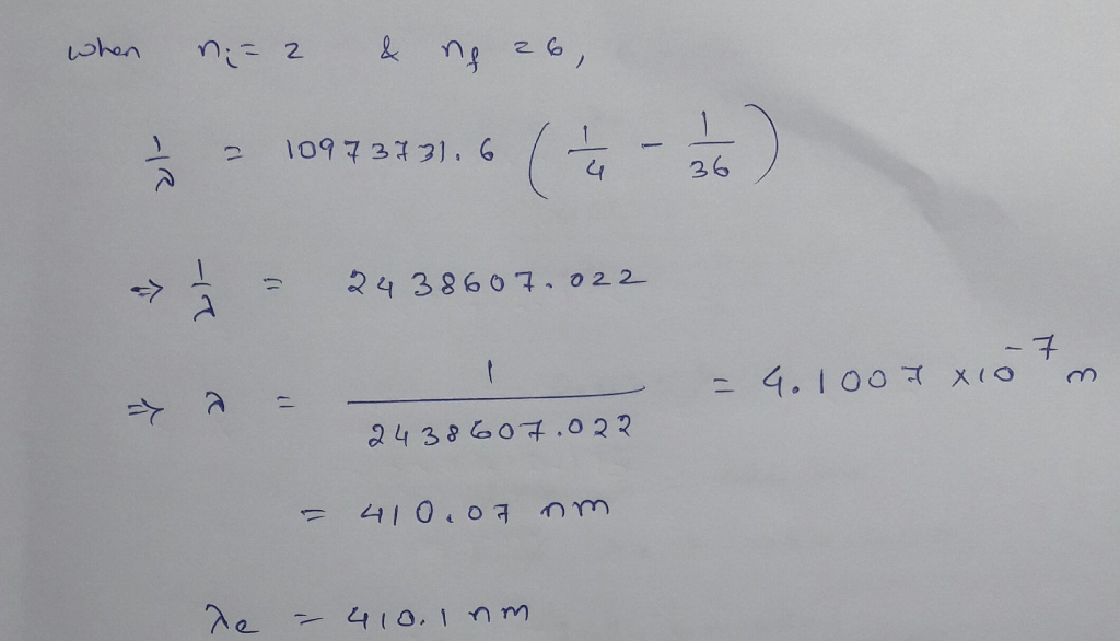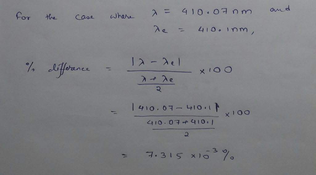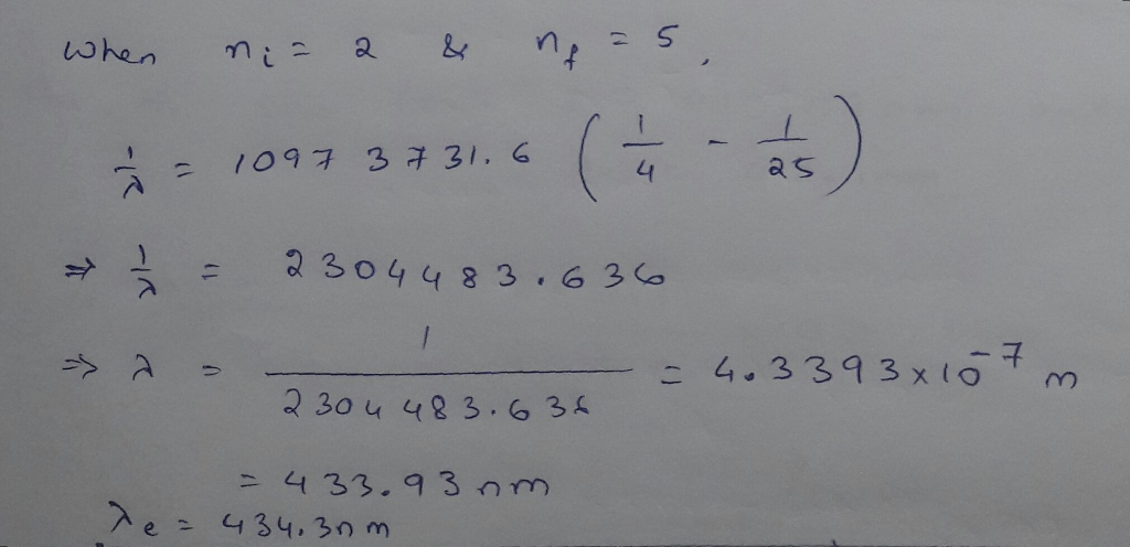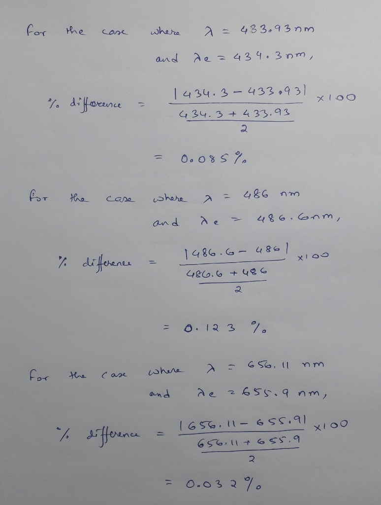 found to be 410.1, 434.3, 486.6, and 655.9 nm. What average