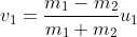 where v1 and v2 are speeds after collision of mass m1 and m2 respectively