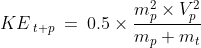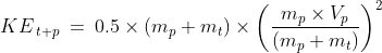 The Kinetic Energy of the target after the collision, KEt+p = 0.5 x ( mp + mt ) x V2t+p