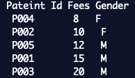 printf("Pateint Id Fees Gender");