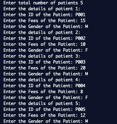 Step 3 : Enter the Details of Patients ( Read Patient ID , Fees and Gender )