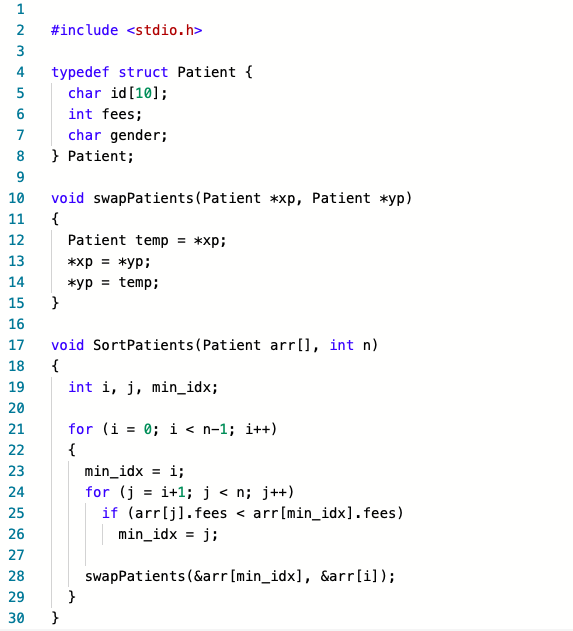 swapPatients(&arr[min_idx], &arr[i]);