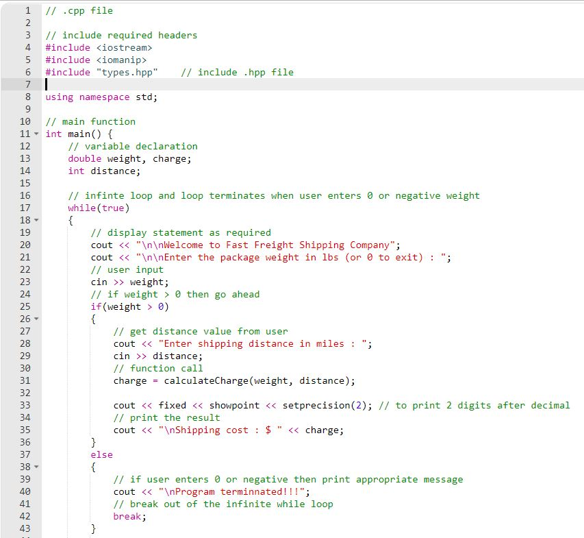 cout << "\n\nWelcome to Fast Freight Shipping Company";