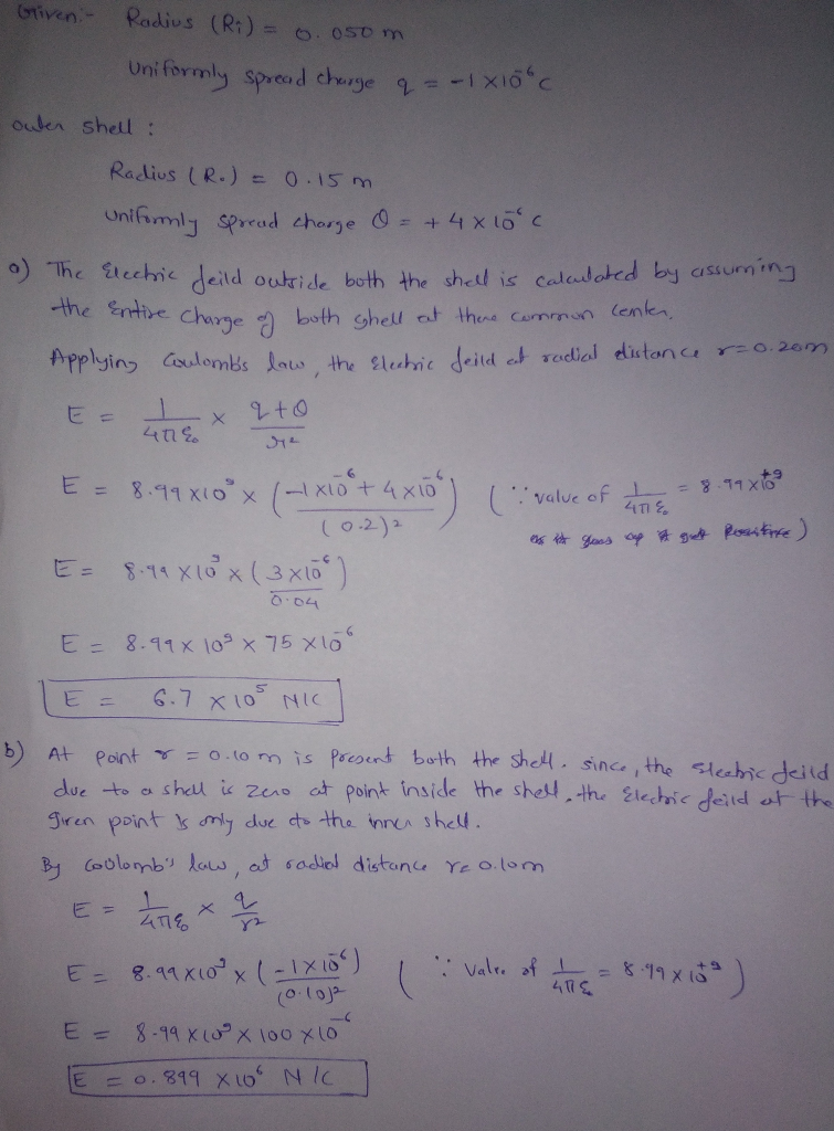 10-6 C charge is spread uniformly over the inner shell,