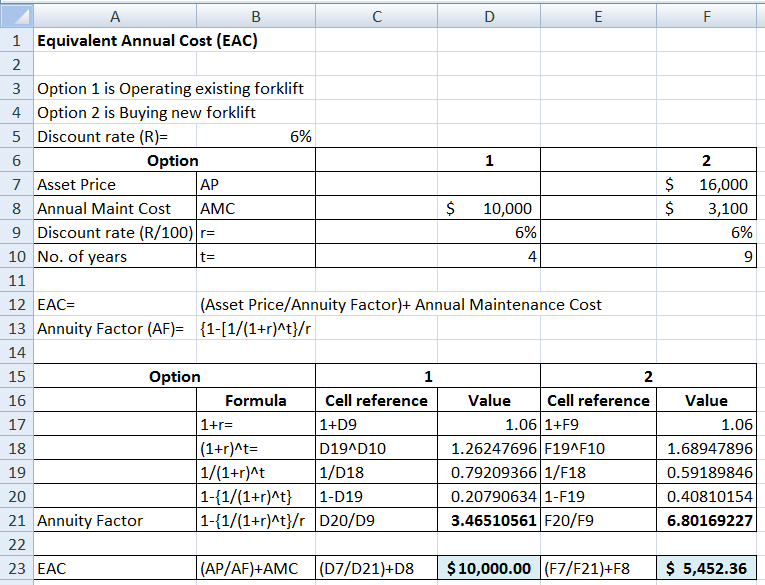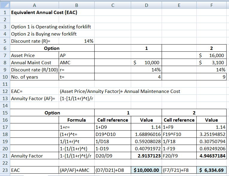 Equivalent Annual Cost of operating the existing forklift= $10,000