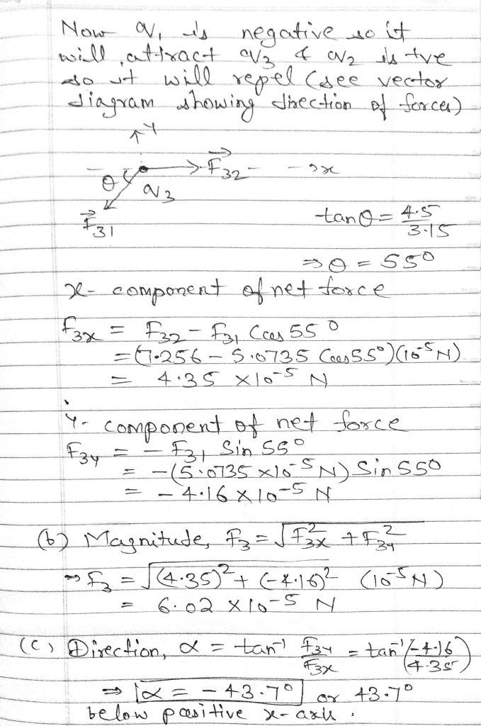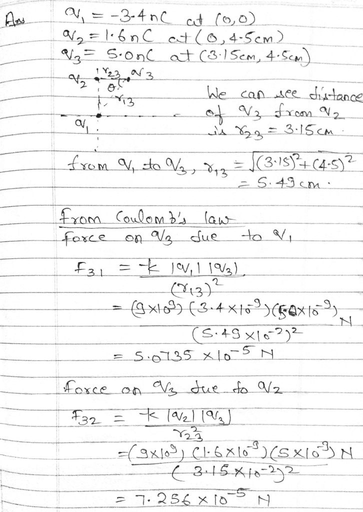 a-If a third charge, of 5.00 nC , is now placed at the point x = 3.15 cm , y = 4.50 cm find the x and y components of the total force exerted on this charge by the other two charges. ?