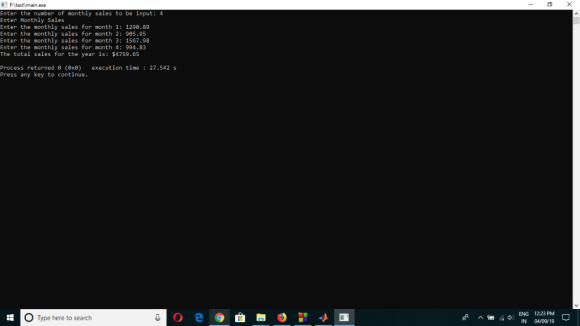 cout<<"The total sales for the year is: $"<<sum<<endl;