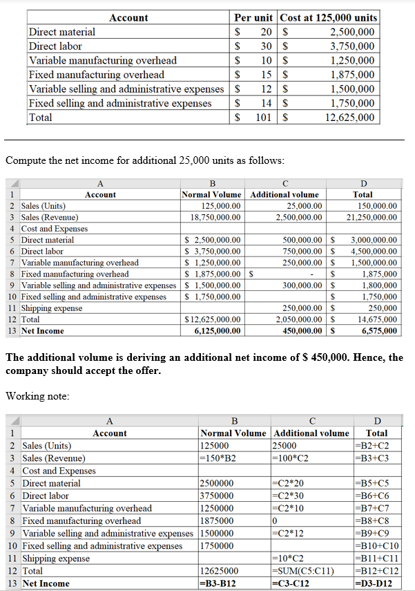 The selling price per unit is $150. The Haley company was contacted by a prospective customer interested in purchasing 25,000 units for $100. The management team is considering this offer and in the meeting about this new prospect, you (the management accountant), stated that the fixed cost will remain the same, but the variable cost will increase along with $10 shipping expense due to the customer’s international location. Management has asked you to determine if they should accept or reject the new customer proposal and what nonmonetary factors should be considered.