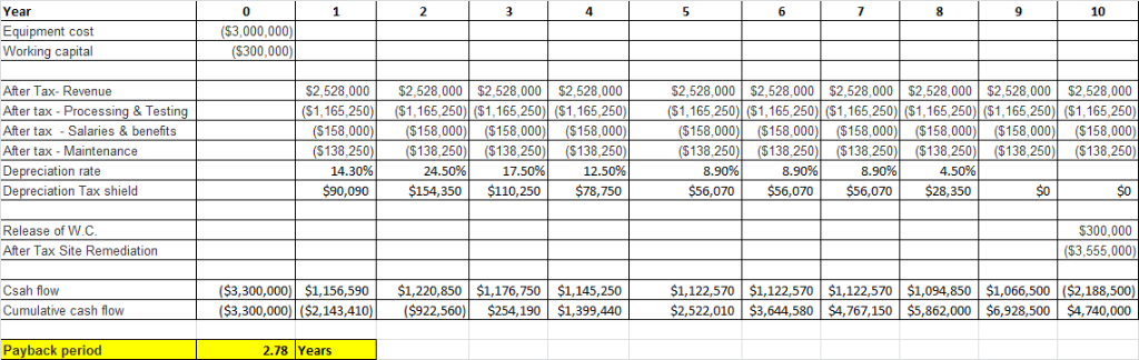 g.The project requires an investment in additional working capital of $300,000. This working capital would be released for use elsewhere at the conclusion of the project in 10 years.