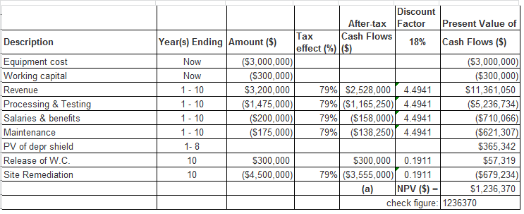 j.The tax rate is 21% and it uses an 18% after tax discount rate (minimum required rate of return)
