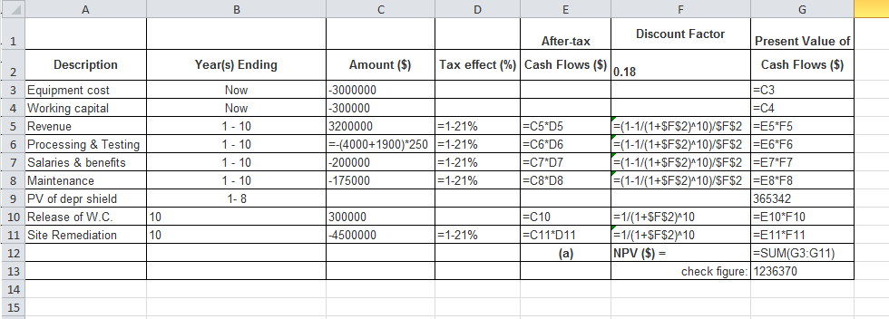 | (a) | NPV ($) = | |||||