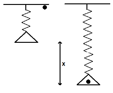 Now, when the clay ball is dropped on the pan, the pan will stretch the spring untill the total kinetic energy is not converted into the potential energy. (See image)