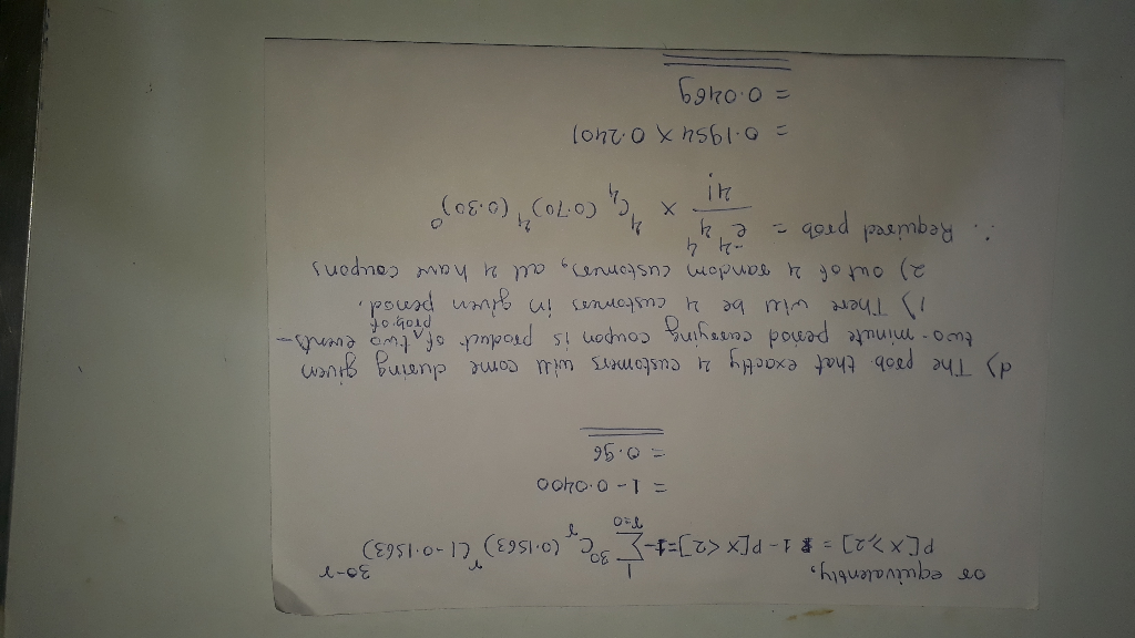 (d) What is the probability that exact 4 customers coming to the store during a given two-minute period carry coupons?