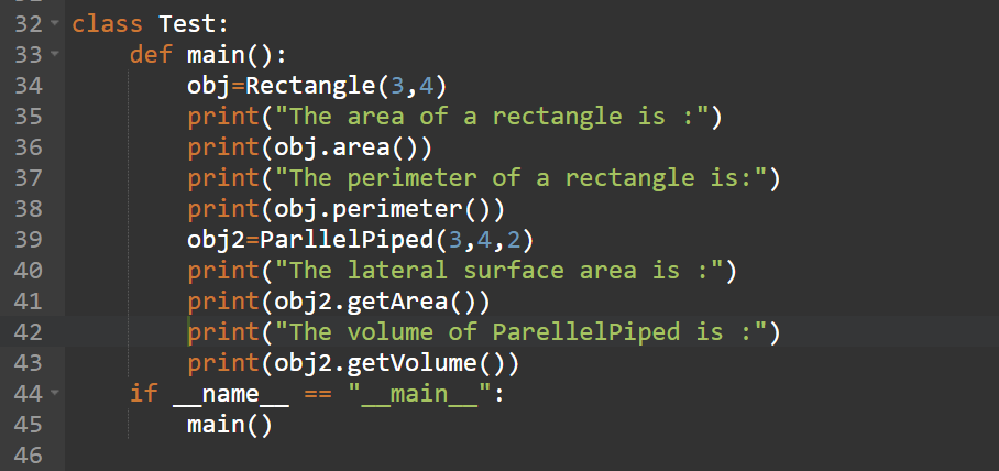 PYTHON ?Write a superclass encapsulating a rectangle. A rectangle has two attributes representing the width and the height of the rectangle. It has methods returning the perimeter and the area of the rectangle. This class has a subclass, encapsulating a parallelepiped, or box. A parallelepiped has a rectangle as its base, and another attribute, its length; it has two methods that calculate and return its area and volume. You also need to include a client class (with the main method) to test these two classes.??
